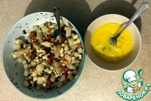 4. Смешать компоненты (все, кроме яиц) для начинки.