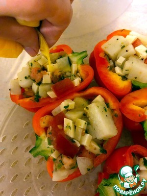 7. Заполняем перцы начинкой. Помещаем их в форму пароварки.