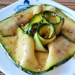 Настаивался почти 5 часов. Кабачок немного промариновался, но яркости вкуса у кабачка от заправки всё равно нет. Небольшая остринка от перца и аромат от кунжута, но мне как-то не хватило этого. Хочется чего-то более ароматного, возможно чеснока или черемши.