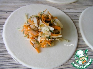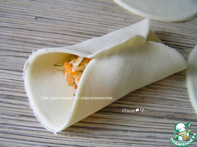 Так же поступите с оставшимся тестом и начинкой. Готовые "полуфабрикаты" накрывайте влажным полотенцем, чтобы не заветрились.