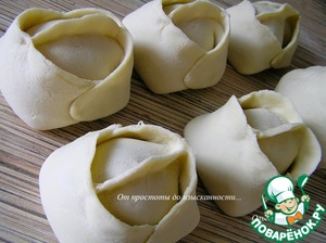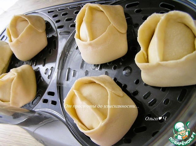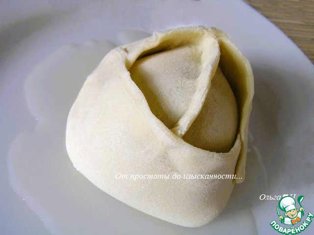 Я тоже полностью "залепливаю", но не с таким широким бортиком, так как у меня всегда много начинки помещается в манты, чтобы не есть много теста