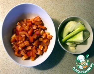 3. Тем временем моем помидоры. Крошим их кубиками.