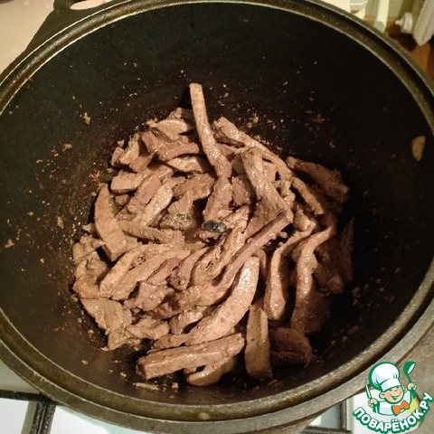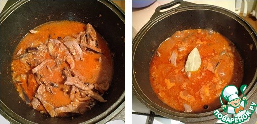 Затем залить водой, потушить 10мин, положить лавровый лист, дать постоять на слабом огне еще 5мин и выключить.