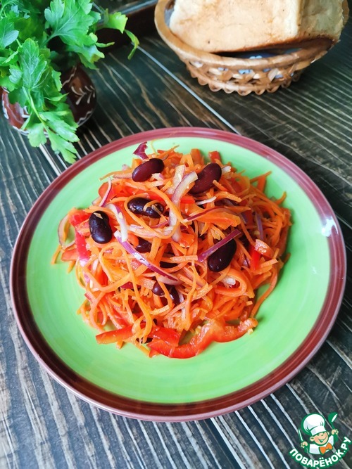 Овощной салат с фасолью и морковью по-корейски, достаточно сытный, с остринкой и пряной ноткой, без какой-либо заправки и майонеза. Разнообразит меню постящихся и вегетарианцев, мясоедам заменит привычный гарнир. Угощайтесь!