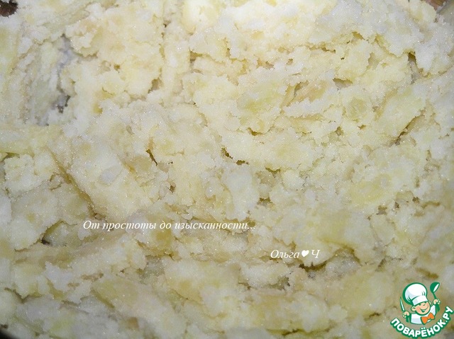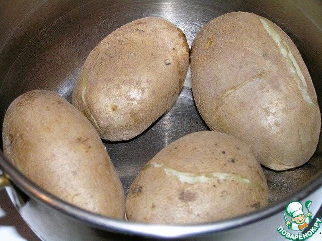 Приготовьте начинку. Отварите картофель "в мундире", очистите от кожуры.