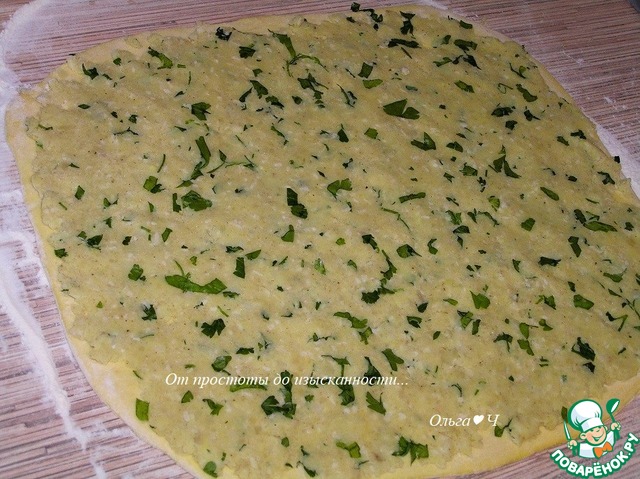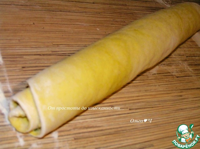 Затем раскатайте тесто в тонкий пласт толщиной 2-3 мм.