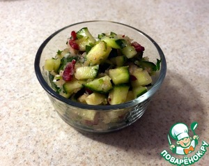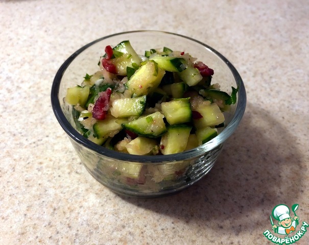 Всем любителям огуречных салатиков и маринованных огурчиков посвящается этот рецепт! Кисло-сладкий вкус от запеченного яблока и клюквы прекрасно сочетается с огурчиками в этом салатике. Приходите попробовать!