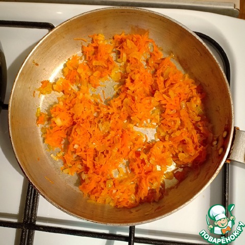 Обжарить лук с морковкой в небольшом количестве растительного масла.