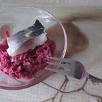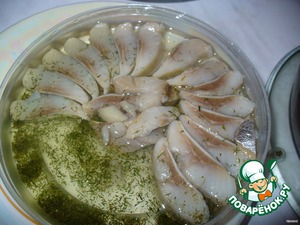 Селедку мелко нарезать. Если она из банки, то хорошо слить рассол или маринад.