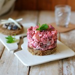 Это просто на заметку. Покупная селедка в банках не всегда бывает вкусной... Тогда я делаю такой салат.