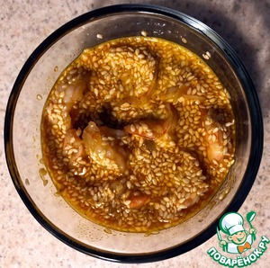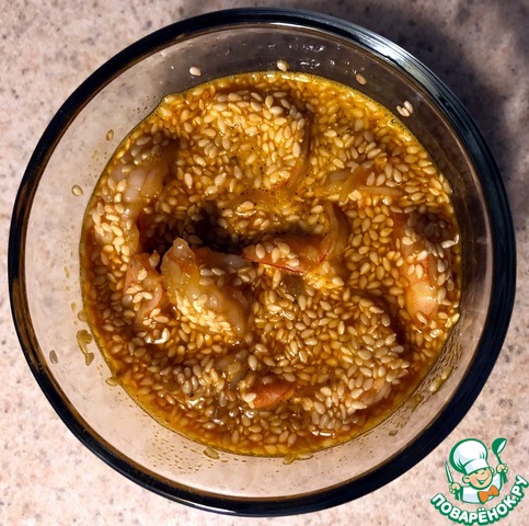 5. В этом соусе маринуем креветки, поставив их в холодильник на полчаса или дольше.