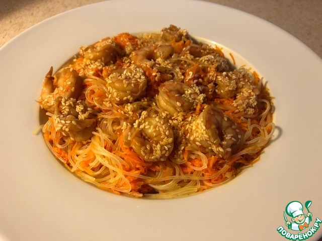 Рецепт «Фунчоза с креветками и "морковью по-корейски"»: