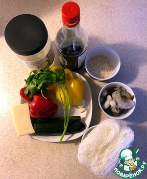 Ингредиенты для «Фунчоза с креветками и манго»: