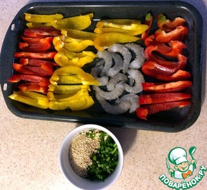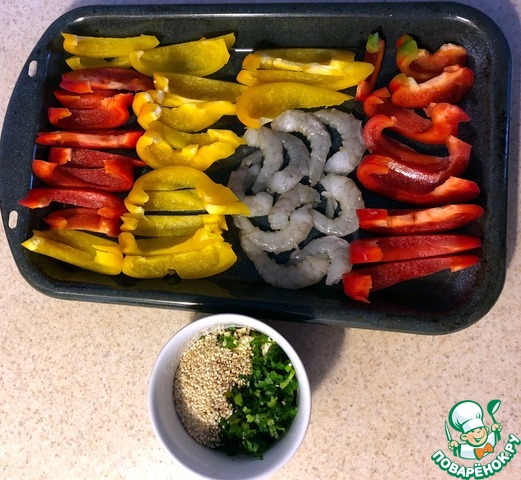 4. Креветки и перец запечь 10 мин при 150С (вторая полка сверху и нагрев только снизу).