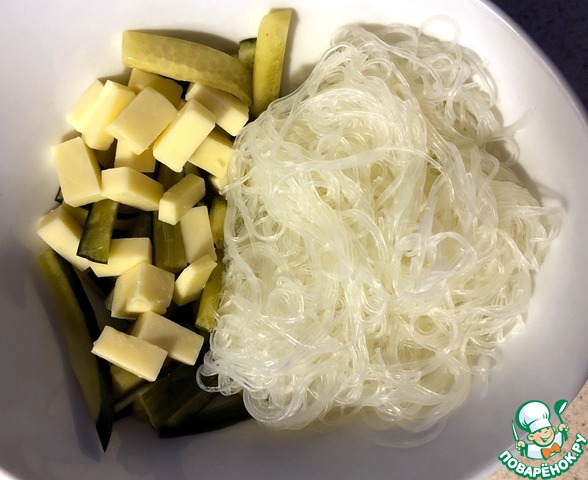 11. Сварить фунчозу согласно инструкции. Я варю 1 минуту и промываю холодной водой. -