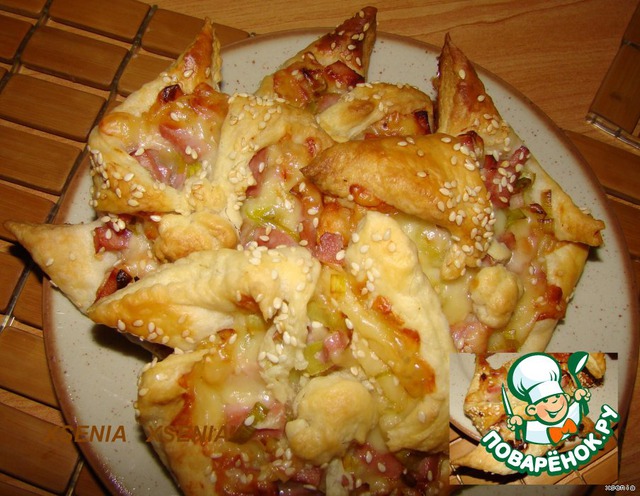 Закусочка "вертушки"... Можно делать с любыми начинками.. Я хочу вам показать с сыром.. луком пореем.. и ветчиной!!.. Тесто очень простое.. по структуре похоже на слоеное.. ))