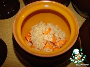 Затем в каждый горшочек насыпать по столовой ложке риса