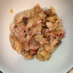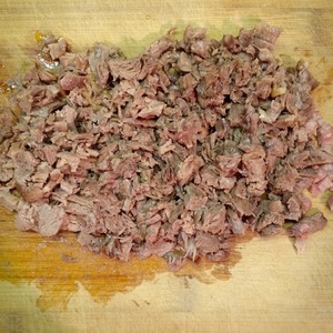 Когда все остынет, мясо вытащить из кастрюли, отделить его от жира и косточек.