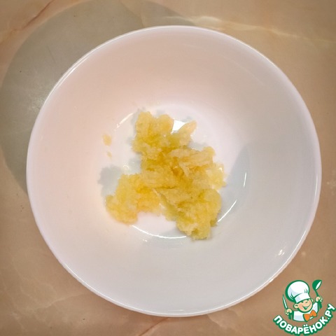 Чеснок очистить и натереть его на мелкой терке или пропустить через пресс.