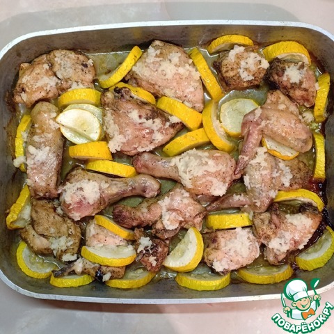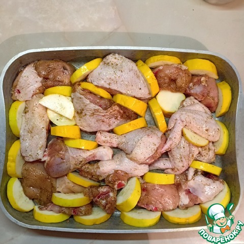 Рецепт «Курица с кабачками под чесночной корочкой»: