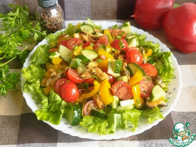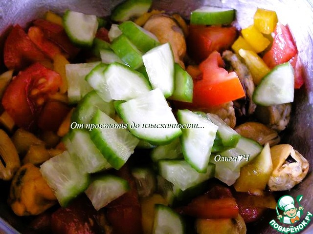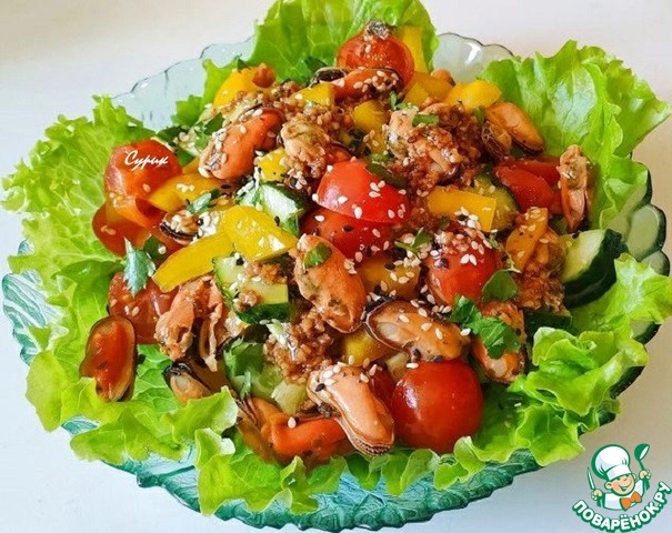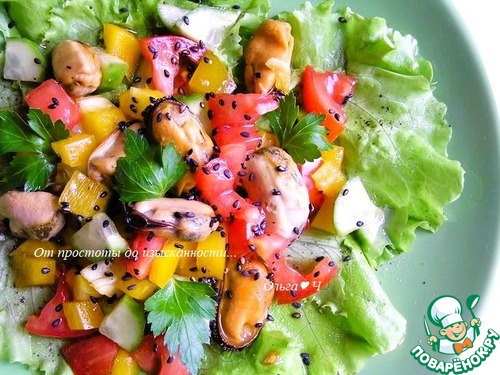 Описание: Попробуйте этот освежающий, весенний, яркий и витаминный салат с мидиями в пикантной заправке. Очень вкусно и полезно, особенно в пост!