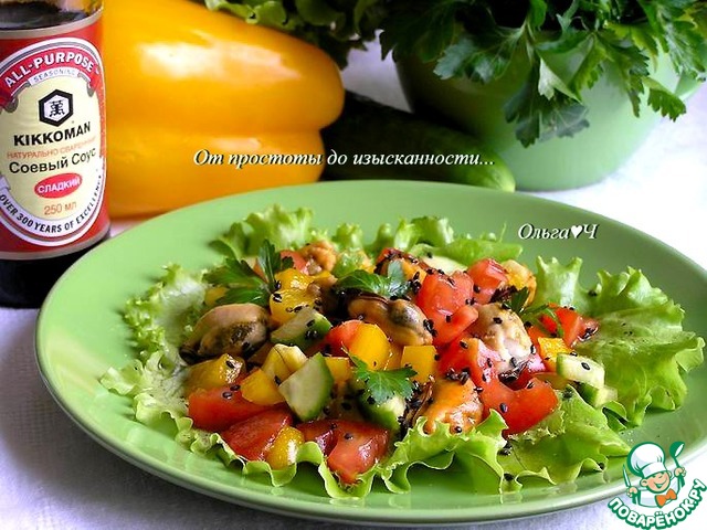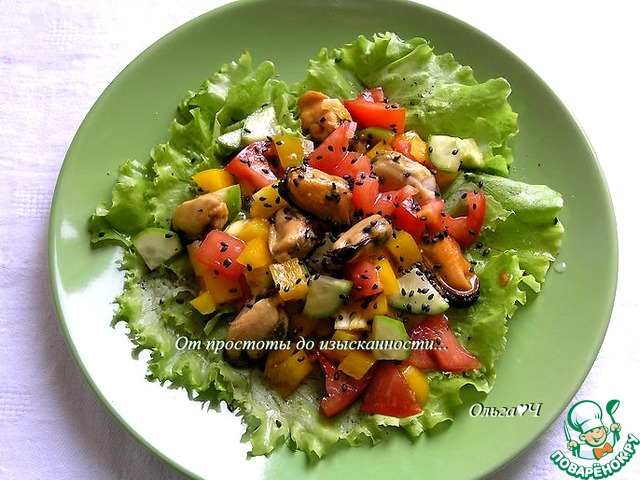 Попробуйте этот освежающий, весенний, яркий и витаминный салат с мидиями в пикантной заправке. Очень вкусно и полезно, особенно в пост!
