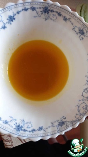 Масло нерафинированное соединяем с горчицей и лимонным соком, взбиваем вилочкой.
