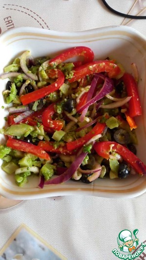 Я очень люблю легкие овощные салаты, с заправкой на основе растительного масла! Если Вы такой же любитель - попробуйте, не пожалеете! Идею салата нашла где то на просторах интернета, ранее не встречала ни в ресторанах, ни в гостях! Сегодня предлагаю рецепт близкий к оригинальному, но с ингредиентами можно смело экспериментировать - можно добавлять любую зелень, авокадо или помидор, лучше черри, заменять маслины оливками или не класть их вообще и т. д.