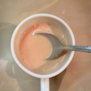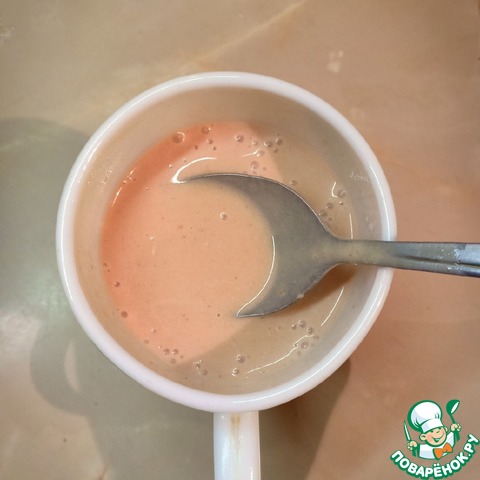 В стакане или миске в небольшом количестве воды развести сметану с соусом до однородного состояния.