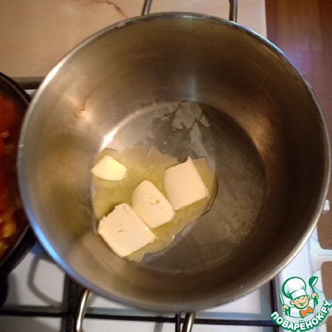 В кастрюле растопить немного сливочного масла.