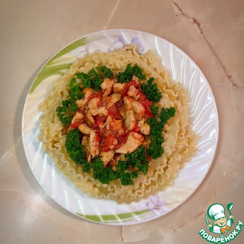 Рецепт «Паста с курицей под чесночно-томатным соусом»: