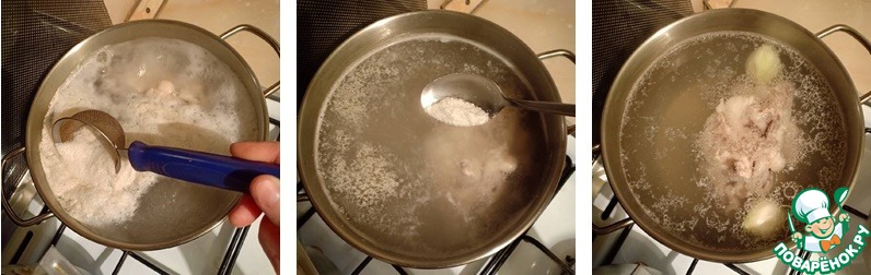 Куриное мясо хорошо промыть, поместить в кастрюлю с холодной водой и поставить на огонь. Когда мясо закипит, огонь убавить, снять образовавшуюся пену, посолить, добавить головку лука, разрезанного пополам, накрыть крышкой и варить до готовности.