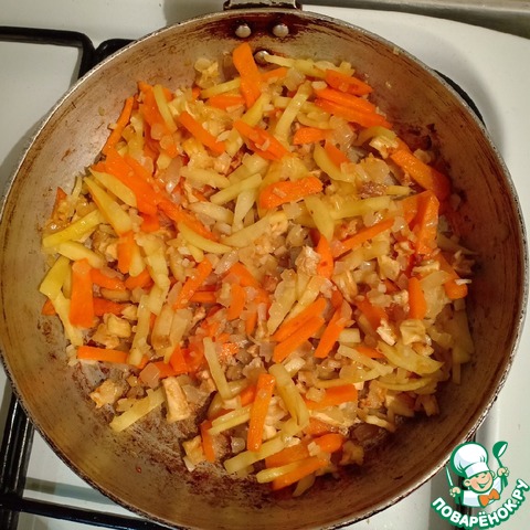 Морковь крупно натереть на терке или нарезать в произвольной форме.