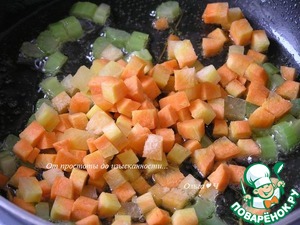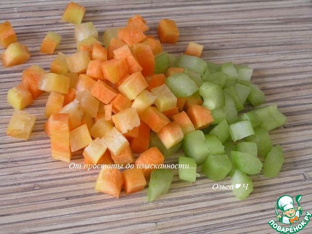 Нарежьте морковь и сельдерей маленькими кубиками.