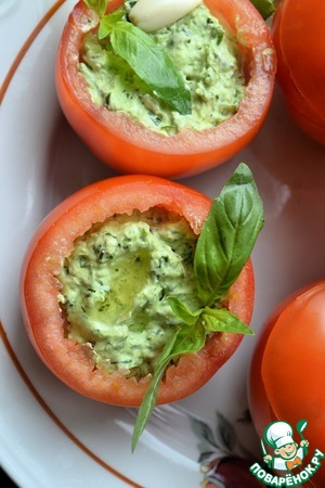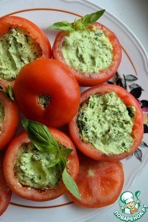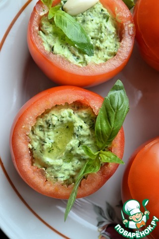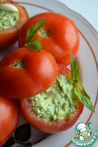 Накрыть помидоры шляпками. Поставить в холодильник на 30 минут.