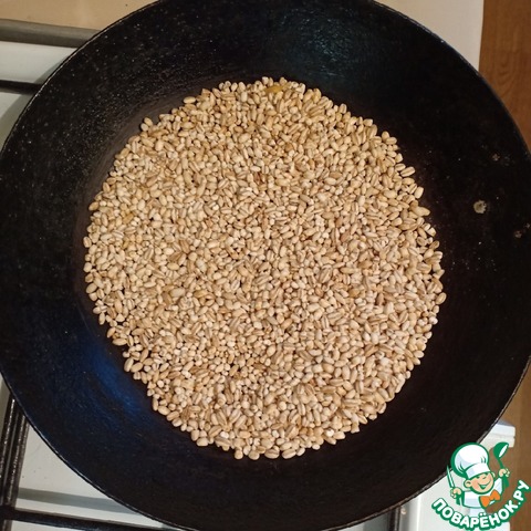 Перловую крупу обжарить на сковороде.