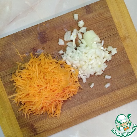 Морковь натереть на терке, лук мелко покрошить.