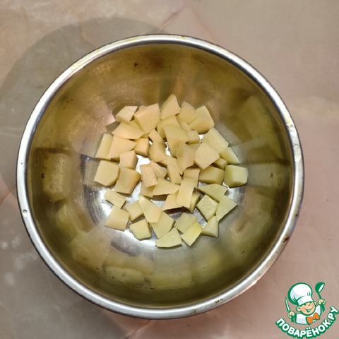 Картофель нарезать небольшими кубиками.