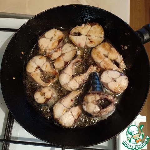 Затем овощи вынуть и здесь же обжарить кусочки рыбы по 2 - 3мин с каждой стороны.