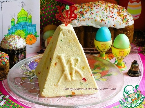 Готовую пасху аккуратно переверните на сервировочное блюдо, освободите от формы и подавайте к праздничному столу.
