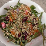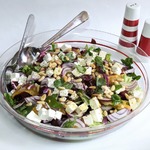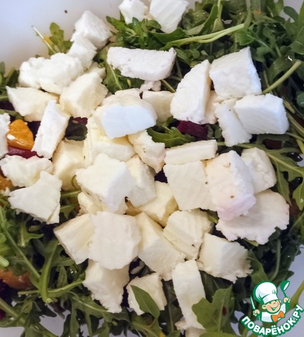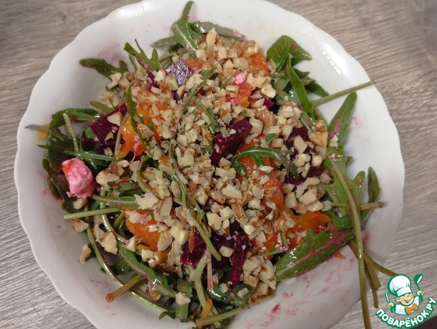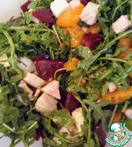 Необычное сочетание продуктов:: свеклы, апельсина, сыра Фета и грецких орехов на листьях руколы придают салату неповторимый цитрусово-сладкий вкус с орехово-соленой ноткой. Заправка тоже вполне достойна, так как она усиливает цитрусово-сладкий вкус салата. Обязательно попробуйте!