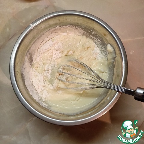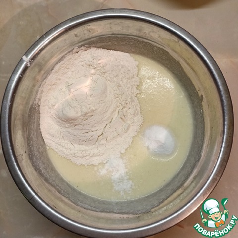 Затем добавить муку, соду, ванильный сахар и все перемешать до однородной массы.