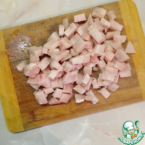 Мясо нарезать средними кубиками.