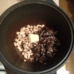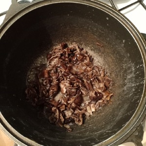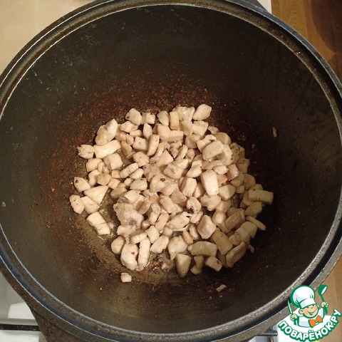 В глубоком казане обжарить грибы на растительном масле.