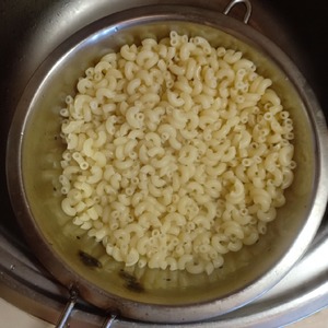 Затем воду слить, а рожки хорошо промыть под холодной водой и дать воде стечь.