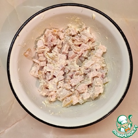 Перемешать с небольшим количеством майонеза.