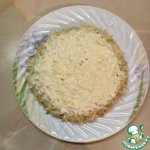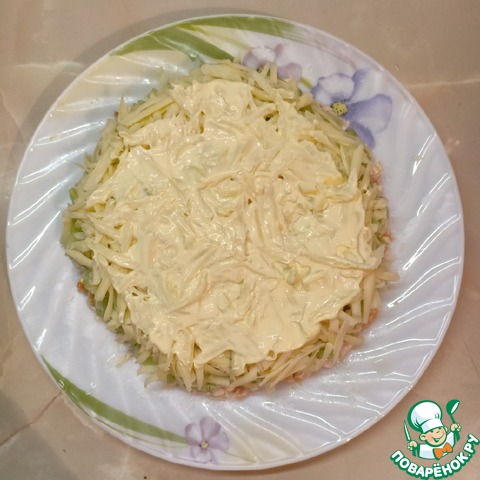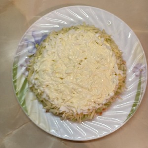 3 слой — сыр натереть на крупной терке.