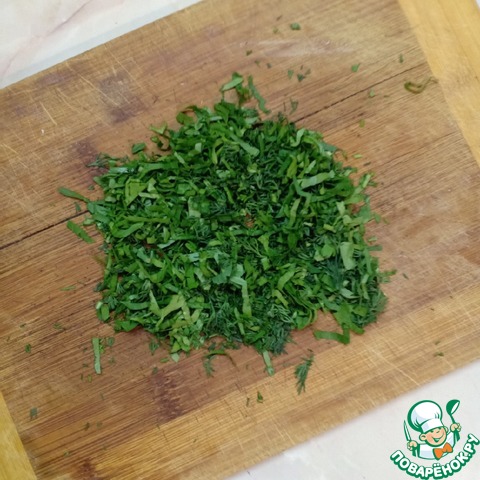 Зелень мелко порубить.