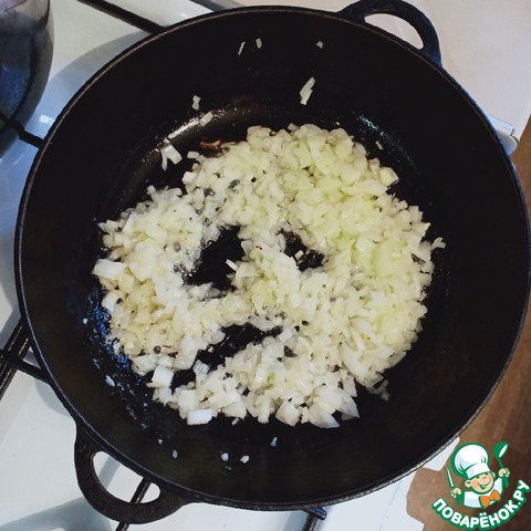 На хорошо разогретой сковороде растопить сливочное масло и слегка обжарить измельченный лук.