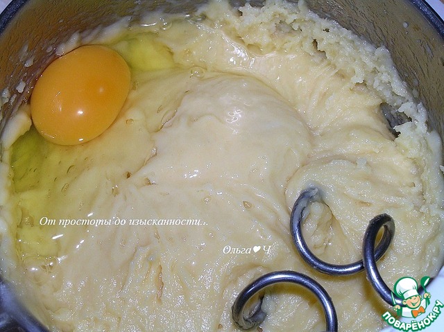 • Снимите с огня и по одному добавьте в тесто яйца...